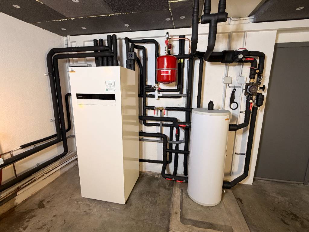 Le passage d'une vieille chaudière fioul à une pompe à chaleur air/eau représente un choix judicieux pour votre maison équipée de radiateurs et assurant la production d'ECS. L'entreprise JLVM a préparé l'installation de manière optimale : Une étude thermique sérieuse avant toutes propositions ! un circuit hydraulique revu afin d'optimiser le rendement et l'efficacité, une machine dimensionné comme il se doit (haute température ici délivrant de l'eau à 75°C pour desservir des radiateurs), un désembouage complet avec les produits COROXYL garantit une circulation fluide, et les composants essentiels (pot à boue, filtre, vase d'expansion, soupape) mis en place. L'intégration de la production d'eau chaude sanitaire est prévue avec un ballon ECS de 185L embarqué dans l'unité intérieur.