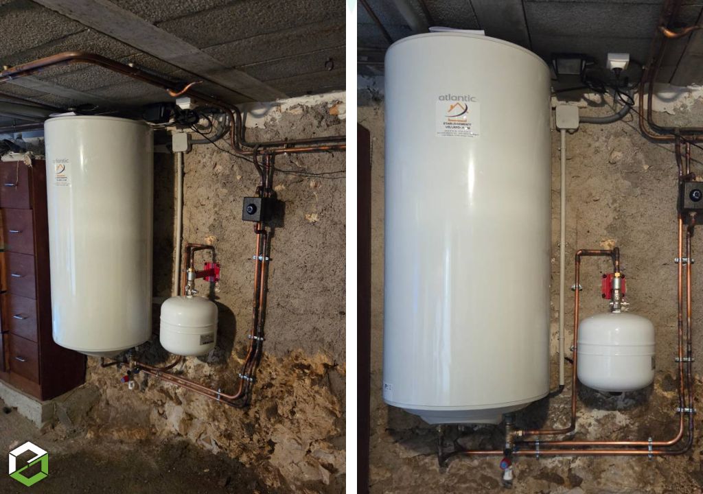 Un vase d'expansion a également été mis en place car aucune vidange n'est présente pour l'évacuation du groupe de sécurité.